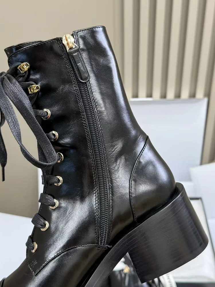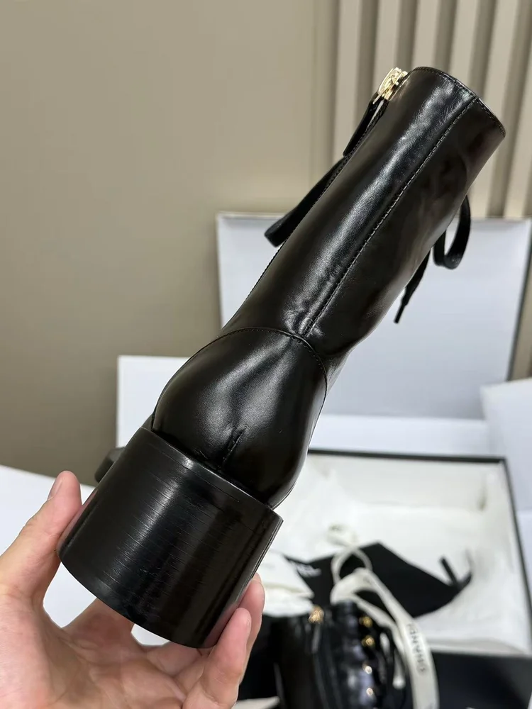 Chanel Chanel Motorcycle Boots embodies luxury craftsmanship and the signature elegance of its maison. The silhouette is designed to balance style with comfort, perfect for city wear or elevated occasions. Attention to detail is evident in its stitching, finish, and timeless design ethos. A versatile statement piece, it transitions effortlessly from daywear to evening sophistication.