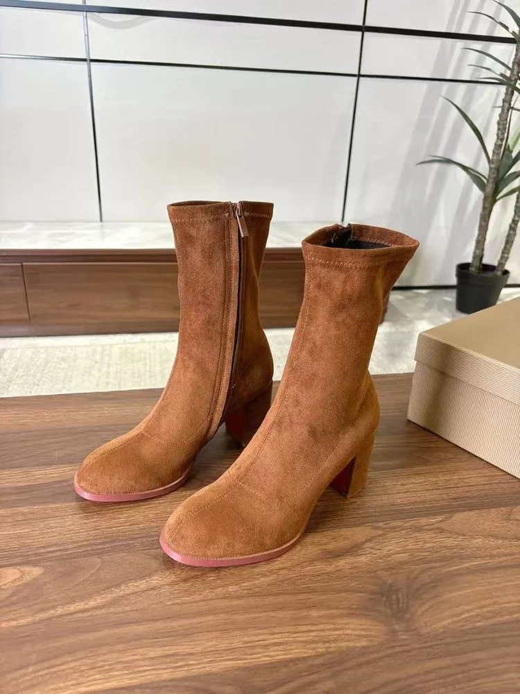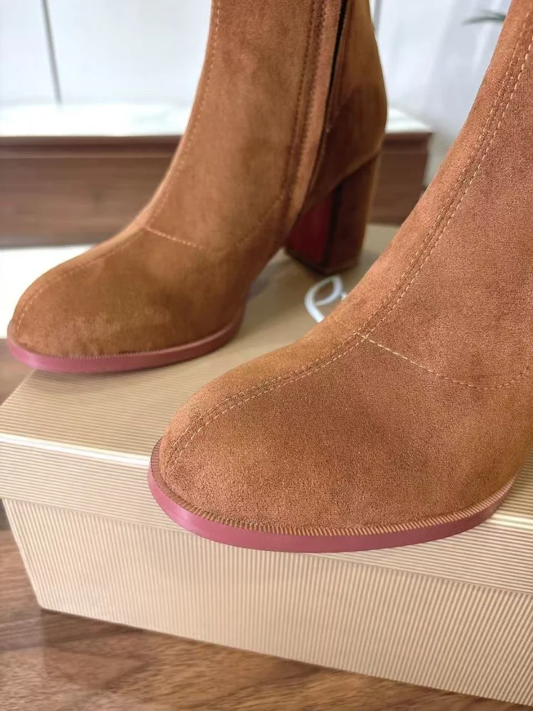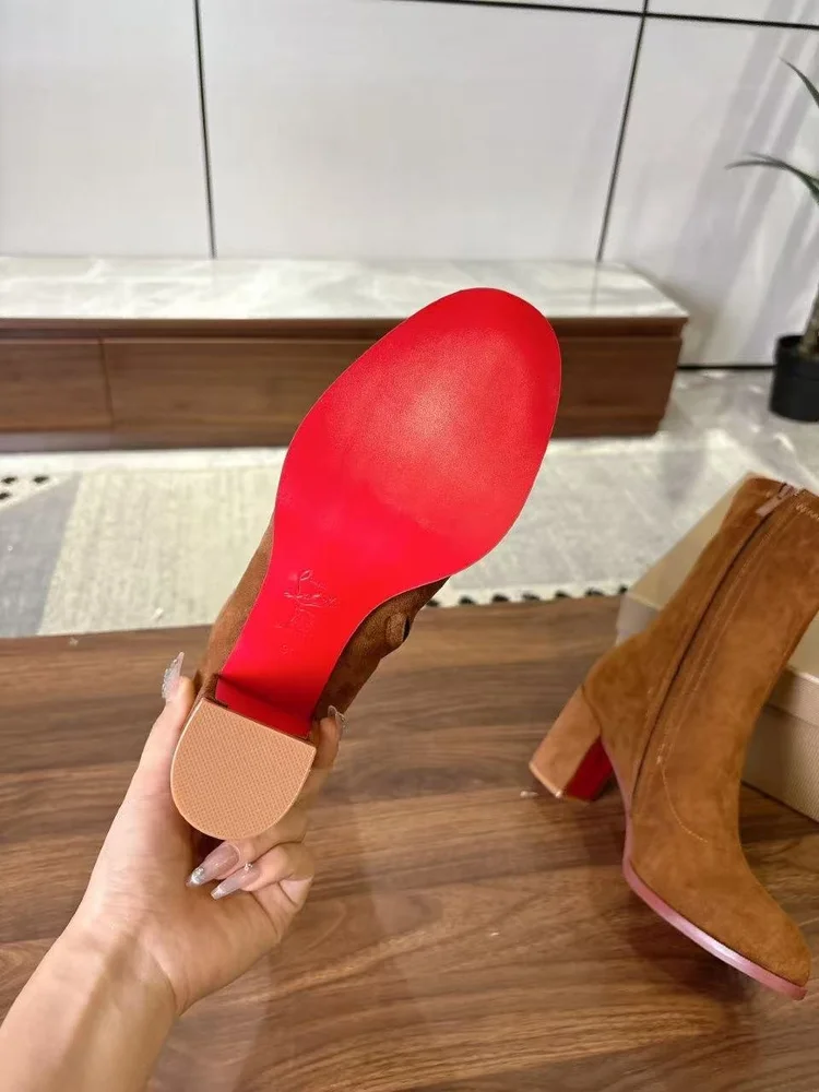 Christian Christian Louboutin 25SS Chunky Heel Boots embodies luxury craftsmanship and the signature elegance of its maison. The silhouette is designed to balance style with comfort, perfect for city wear or elevated occasions. Attention to detail is evident in its stitching, finish, and timeless design ethos. A versatile statement piece, it transitions effortlessly from daywear to evening sophistication.