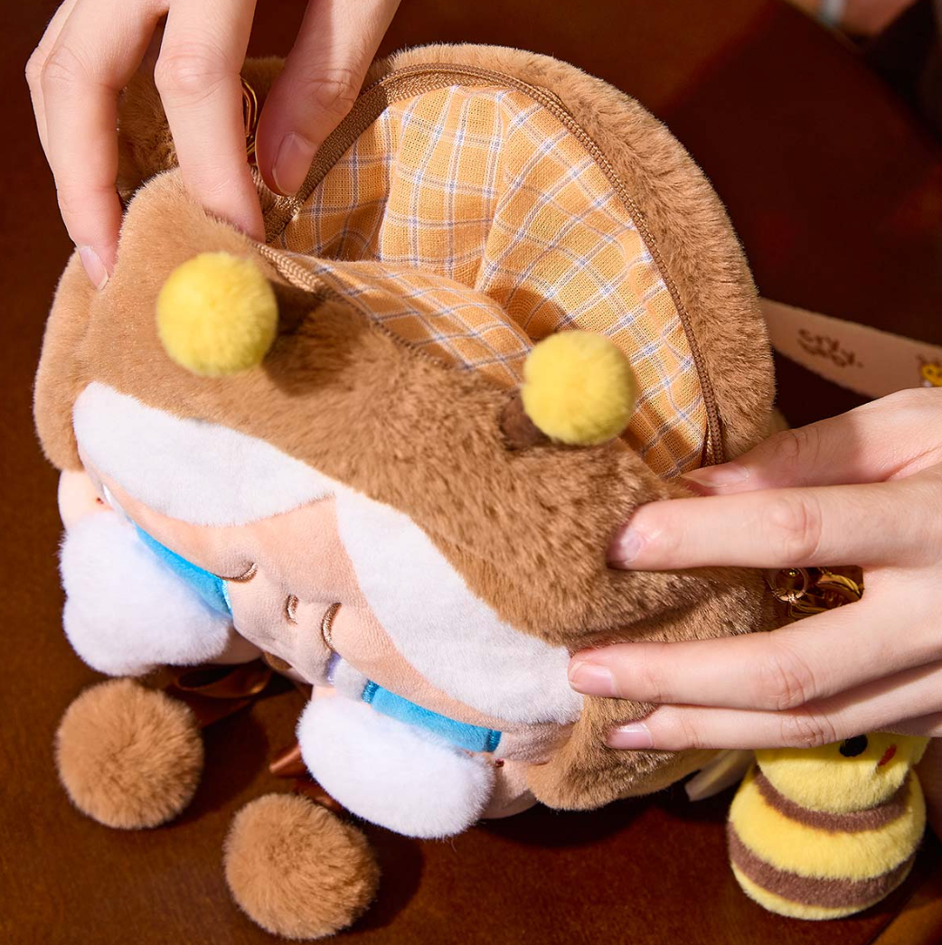 Designer: POP MART Release Date: October 4 SIZE: 24CM*21CM*7CM/9.45*8.27*2.76INCHES MAX LOAD CAPACITY: 3KG/6.61lb MATERIAL: SHELL-100% POLYESTER STUFFING-98% POLYESTER 2% SPONGE Not suitable for persons under 15.