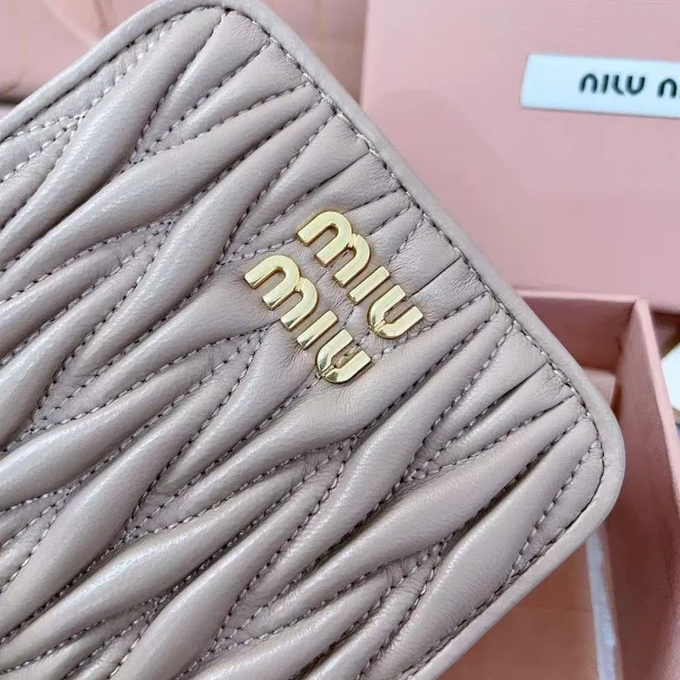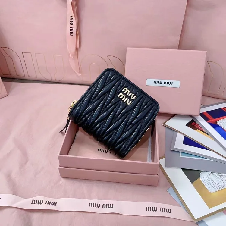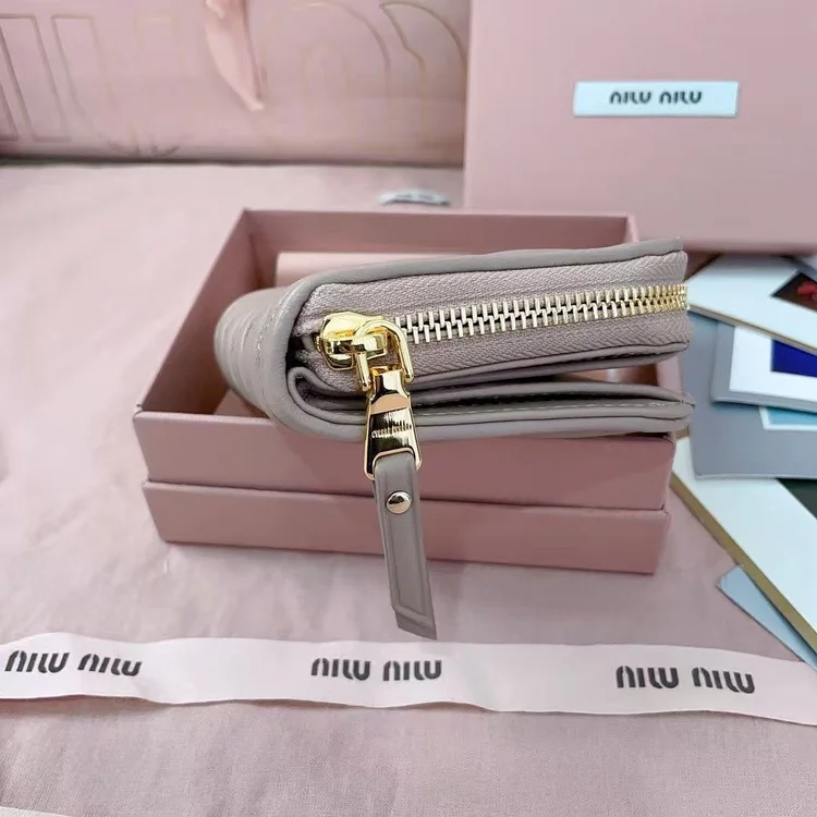 The Miu Miu Miu Matelassé Quilted Lambskin Zipper Wallet is crafted to embody refined luxury and timeless elegance. Made from premium materials such as supple leather or durable coated canvas, it ensures lasting quality. Designed with functionality in mind, it offers organized compartments for cards, coins, and essentials. Its compact yet versatile design makes it perfect for both daily use and travel. A sophisticated accessory that reflects craftsmanship, prestige, and modern practicality.