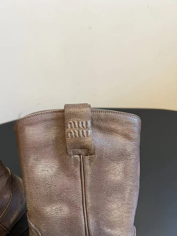 Miumiu MiuMiu Long Boots embodies luxury craftsmanship and the signature elegance of its maison. The silhouette is designed to balance style with comfort, perfect for city wear or elevated occasions. Attention to detail is evident in its stitching, finish, and timeless design ethos. A versatile statement piece, it transitions effortlessly from daywear to evening sophistication.